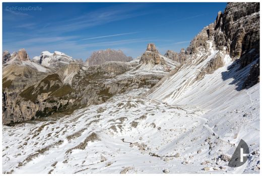Die geologische Geschichte der Dolomiten beginnt vor etwa 280 Millionen Jahren, als im Zeitalter des Perm eine Bergkette am Rande eines ozeanischen Golfes abzusinken begann: Das Dolomitengebiet wurde somit ein großes warmes Meeresbecken. Die einmalige Flora und Fauna tragen wesentlich zur monumentalen Schönheit des Gebirgszuges bei. Die Drei Zinnen gehören zwar durchaus zu den berühmtesten Felsspitzen der Dolomiten, seit dem Jahre 2009 Teil des UNESCO-Weltnaturerbes. Weitere Impressionen: https://www.ehfotoundgrafie.com/2020/10/15/dolomiten/