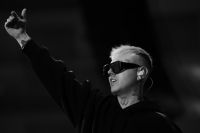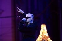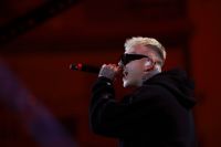 Rapper Lazza opens the event called "Tra Palco e città" at the Suzuki Stage, during the 74th edition of the Sanremo Song Festival. Among the songs sung also "Cenere", with which he ranked second last year. Rap music now represents a form of art, redemption and economic fulfillment for many young musicians in Europe and around the world. Photos are available for editorial use.