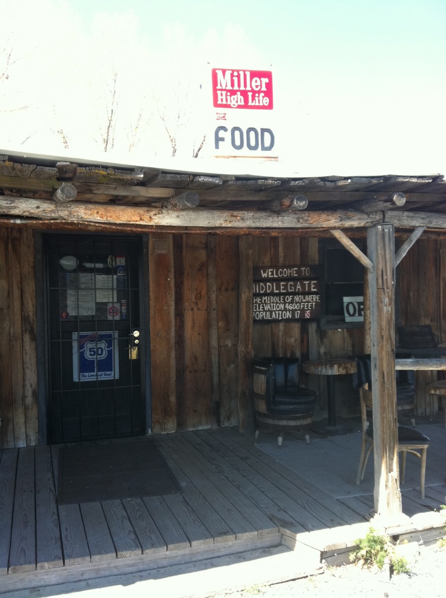 Gespannt was unterwegs auf einen zukommt, sollte man die Landkarte studieren. Auf der Hälfte der Strecke wartet sie - die Oase Middlegate Station. Auf dem Zwischenstück zwischen Fallon und Austin, für die Sie 3 Stunden planen sollten liegt genau in der Mitte nach 1,5 Stunden die Middlegate Station. Ein Salon, Motel und eine Handvoll Wohntrailer bilden hier einen Ort der besonderes Flair versprüht. Schon im Vorfeld kann man sich auf Facebook über Middlegate informieren. Die Betreiber des Salons freuen sich über jede Anfrage. So wurden wir auch hier im Nirgendwo freundlich begrüßt. Einmal im Jahr findet hier übrigens ein riesiges Bikerfestival statt. Das Middlegate Old Fashion Biker BBQ ist der Höhepunkt für die 17 Einwohner von Middlegate